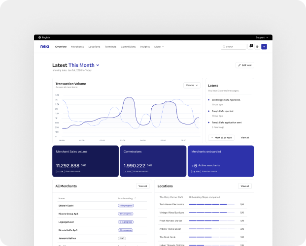 Fast onboarding with real-time visibility into merchant status and activity.
